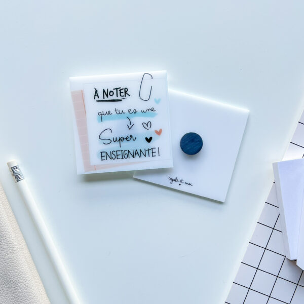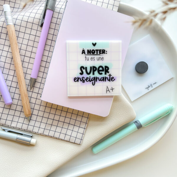 Aimant (style note autocollante) À noter – Super enseignante… – NON PERSONNALISÉ