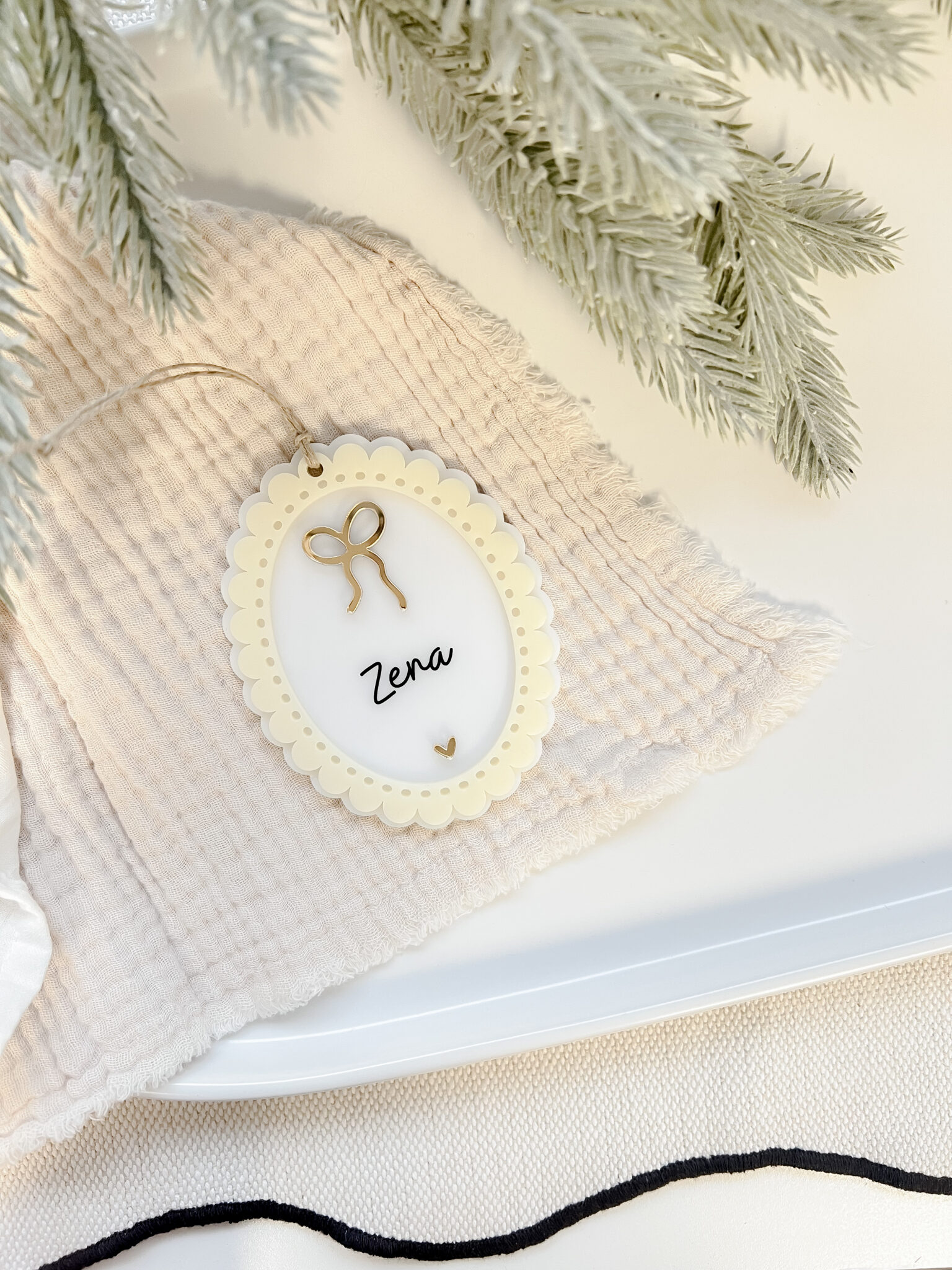 Ornement Ovale dentelle ivoire – Prénom